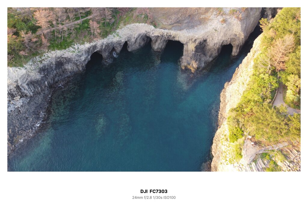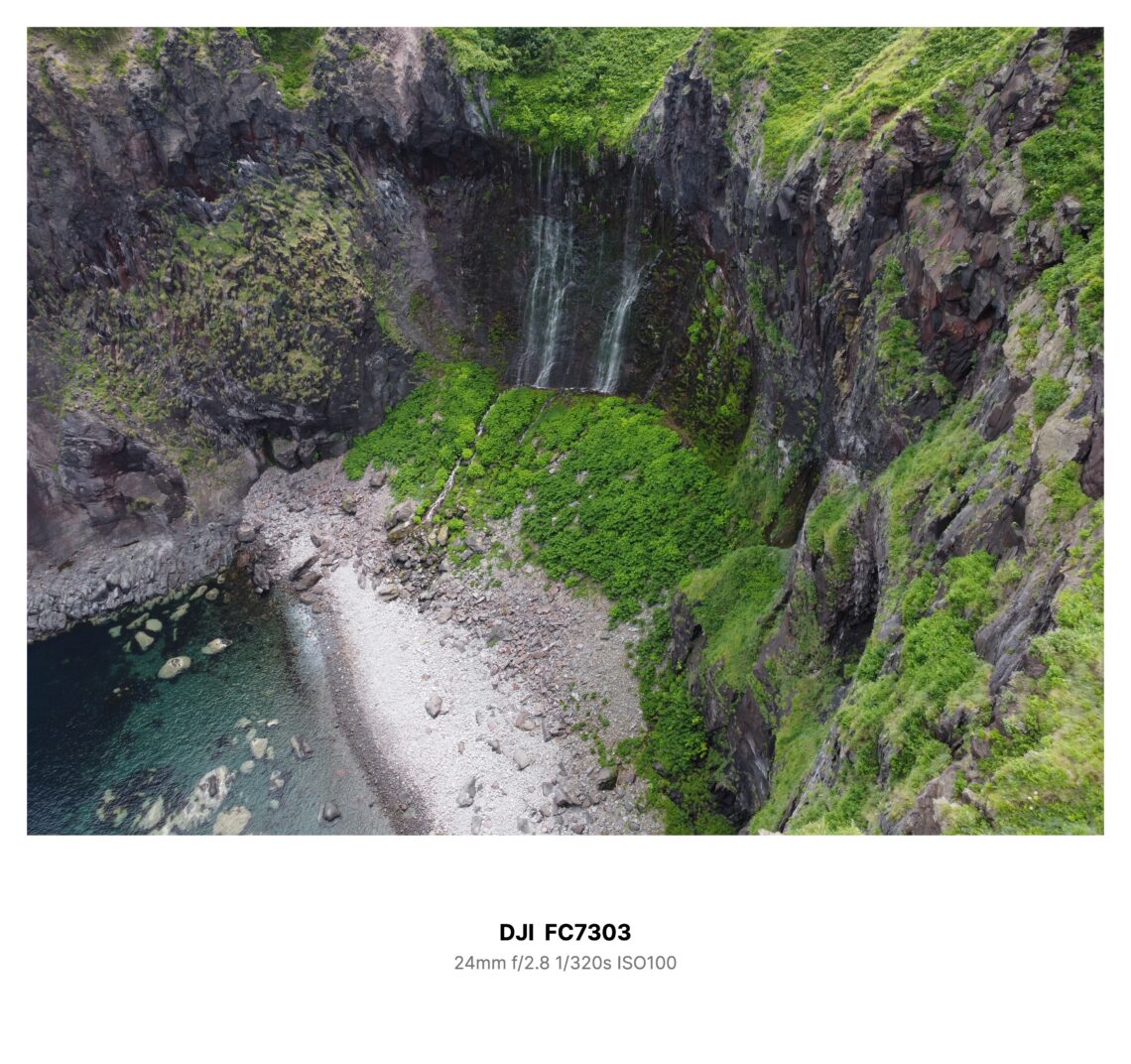 - 空撮:DJI MINI2を使用。展望台の上から断崖と海を俯瞰で捉えることでスケール感が強調される。