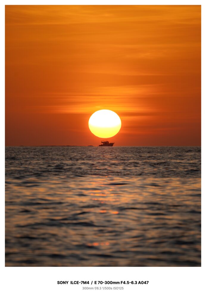 ピレーラグーンの水中撮影や、船上からのジャンプシーン、サンセットのタイムラプスなど、動きのあるシーンに最適です。