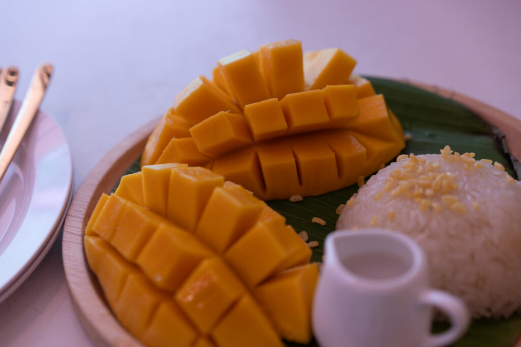 屋台やレストランでは新鮮なトロピカルフルーツやローカル料理が楽しめます。特に気になっていた「カオニャオ・マムアン(もち米マンゴー)」を初体験!